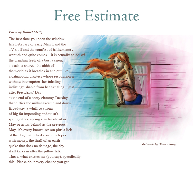 Daniel Meltz's poetry has been published or will soon be published in Best New Poets 2012, American Poetry Review, Salamander, upstreet, Verse Wisconsin, Talking Writing, CCAR Journal, Audio Zine, Temenos, Assisi, Mudfish, Columbia Review, and Lana Turner.