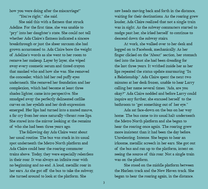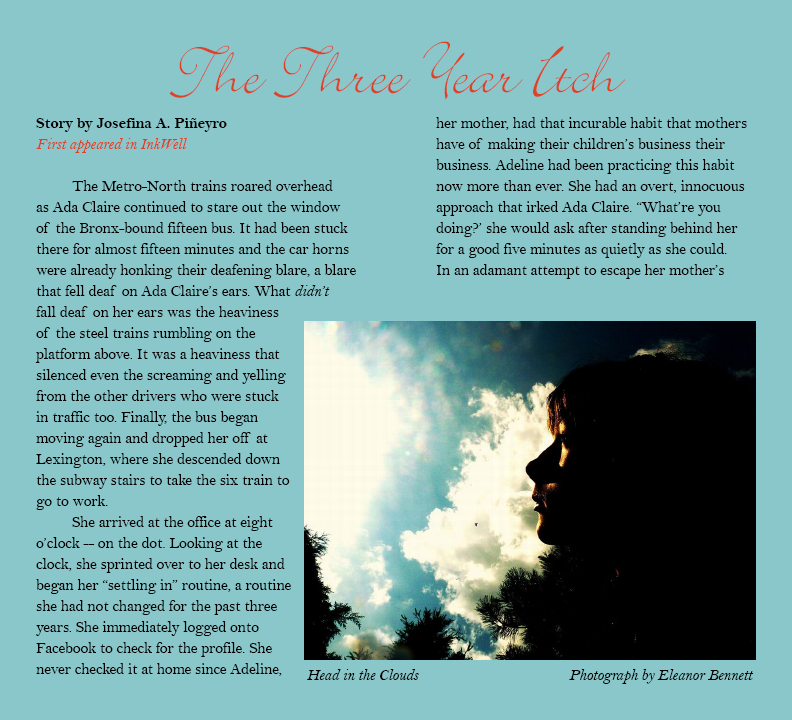 Josefina A. Piñeyro was born and raised in New York City and began writing short stories as an English major at The City College of New York. Her short story "Hudson River Fishing" first appeared in the Fall 2012 issue of the online periodical Aaduna, and also featured in Epiphany's December 2012 issue. Josefina also authored "A Dying Breed," which appears in Aaduna along with "Hudson River Fishing." She is currently working as a high school English/ESL teacher at Empire State Languages for Business Academy, located on the Norman Thomas Campus in the East Side section of Midtown Manhattan.