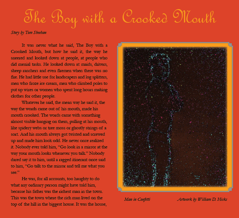Tom Sheehan served in 31st Regt., Korea, 1951-52 and graduated from Boston College in 1956. Books are Epic Cures, 2005, and Brief Cases, Short Spans, ( Press 53) ; A Collection of Friends and From the Quickening, (Pocol Press). He has 18 Pushcart nominations, in Dzanc Best of the Web 2009, 310 stories on Rope and Wire Magazine, work in five issues of Rosebud Magazine, five issues of The Linnet's Wings and eight issues of Ocean Magazine, and other online/print sites, including Nervous Breakdown, Faith-Hope-Fiction, Subtle Tea, Nontrue, Danse Macabre, Jake's Locked-Room Anthology, Deep South Magazine, The Best of Sand Hill Review Anthology, Wilderness House Literary Review, Dew on the Kudzu, Slice of Life, MGVersion2datura, 3 A.M. Magazine, Literary Orphans, Nazar Look, and Qarrtsiluni, etc. Newest eBooks from Milspeak Publishers are Korean Echoes, 2011 and The Westering, 2012, the latter nominated for a National Book Award by the publisher.