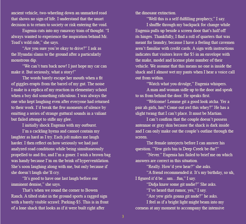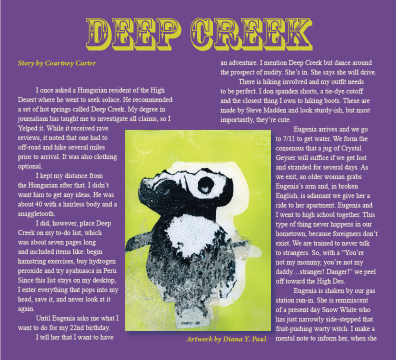 Courtney Carter is a mystery wrapped inside an enigma. She somehow consistently finds herself in strange situations worthy of being set in stone. Her captivating retelling may be attributed to a lineage that includes the pioneers of cuneiform. Favorite expressions include "this could be on TV" and "I need to write that down." She aspires to learn sunset design as this will boost her resume when she applies to create a world.