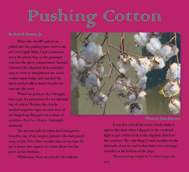Rich H. Kenney, Jr. is an assistant professor of social work at Chadron State College in Chadron, Nebraska. A graduate of the University of Texas with a Master's degree in Social Work, he received a Creative Writing Fellowship in Poetry from the Arizona Commission on the Arts.