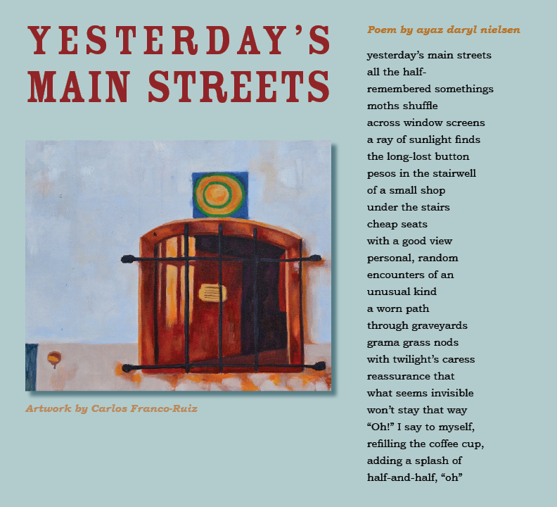 ayaz daryl Nielsen, veteran, hospice nurse, ex-roughneck (as on oil rigs) lives in Longmont, Colorado. Editor of bear creek haiku (30+ years/140+ issues) with poetry published worldwide (and deeply appreciated), he is online at bearcreekhaiku.blogspot.com.