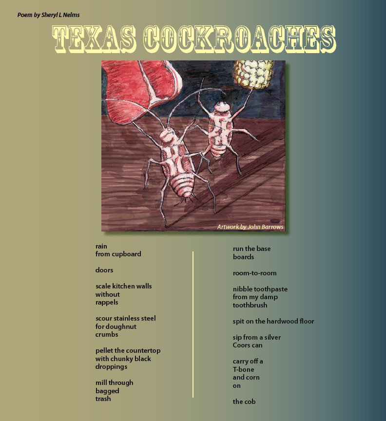 Sheryl L. Nelms is from Marysville, Kansas. She graduated from South Dakota State University in Family Relations and Child Development. She has had over 5,000 articles, stories and poems published, including fourteen individual collections of her poems. She is the fiction/nonfiction editor of THE PEN WOMAN MAGAZINE, The National League of American Pen Women publication.
