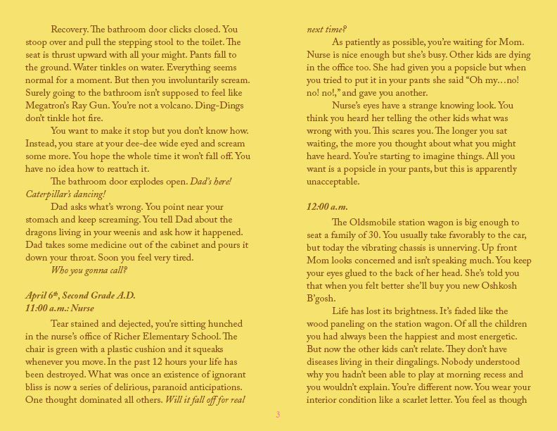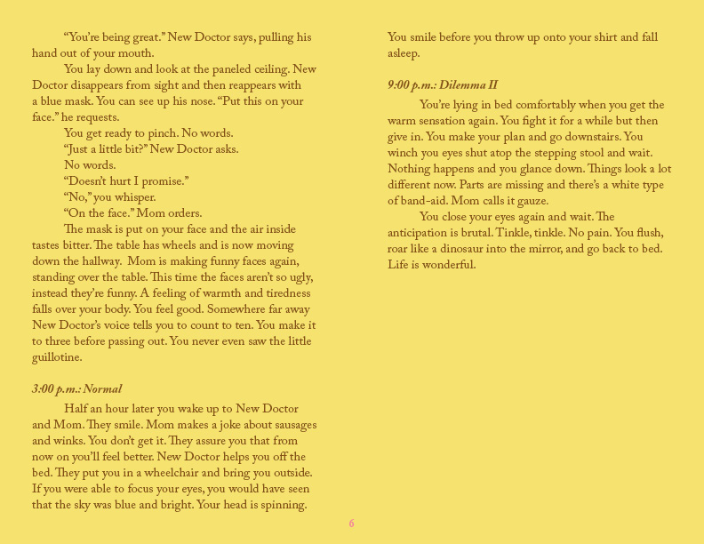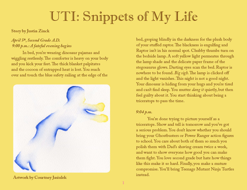 Justin Zinck is twenty-two years old, fifteen years removed from the traumatic ordeal that inspired this story. Originally hailing from the suburbs of Boston, he now lives in Aspen, Colorado working as a ski lift attendant, where he is affectionately known by all as The Chief of the Steeps. In the fall of 2010, Justin will be a first year MFA Fiction candidate at Southern Illinois University. In the past he has worked as a landscaper and a short order fry cook, but he particularly enjoys skiing and mountain biking with his friends Sean and Matt. He has published zero novels.